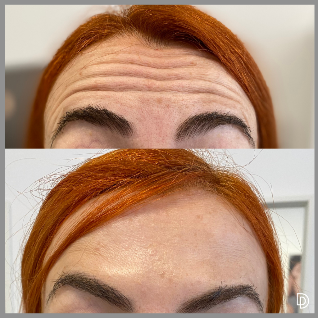 Vizualno najizraženije su bore na čelu i između obrva. One se međusobno razlikuju kod mlađih i starijih klijentica, također ovise o anatomiji, debljini i snazi samog mišića, odnosno koliko je on “nabildan”. Kada osoba u dobi pedesetak godina prvi put dođe na tretman botoxom, potrebna je veća količina preparata jer je mišić znatno jači nego kod tridesetogodišnjakinje. Nadalje, bore koje nisu tretirane postaju sve izraženije i dolazi do tzv. “pucanja bore”. Odnosno, iako se djelovanjem botoxa bora smanjuje, na koži ostaje vidljiva crta, linija koja označava ispucanu kožu u bori nastalu kao posljedica dugotrajne mišićne aktivnosti. Tridesetogodišnjakinja (u usporedbi sa starijim klijenticama) ima vidljive bore koje s jednom aplikacijom botoxa najčešće u potpunosti nestaju, a koža izgleda nježna i glatka. Lice ne izgleda “zaleđeno” već se botox dozira umjereno kako bi se zadržala normalna mimika lica.
